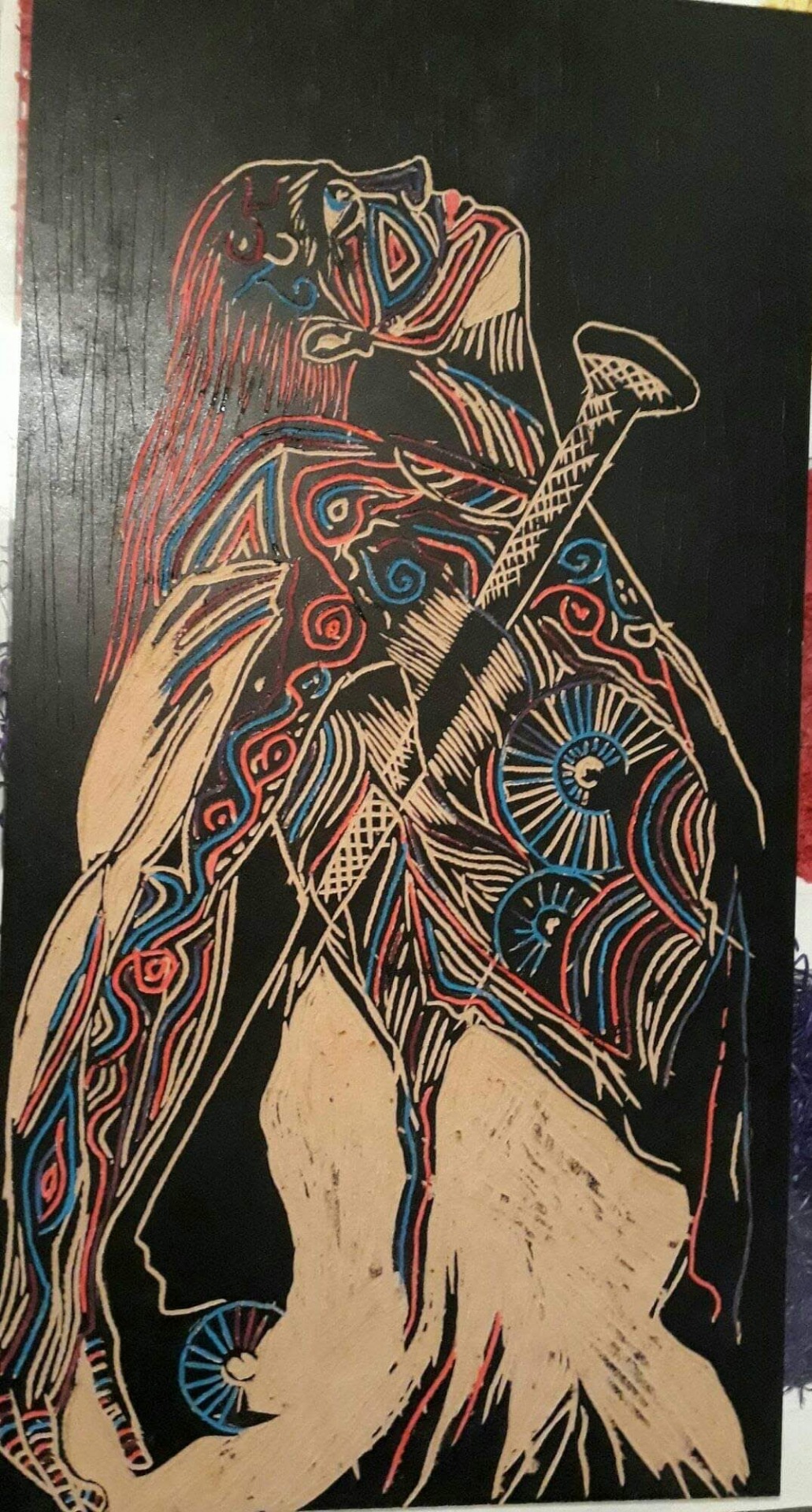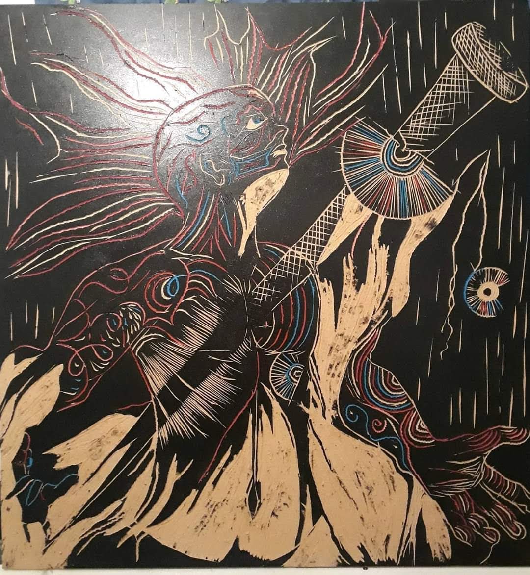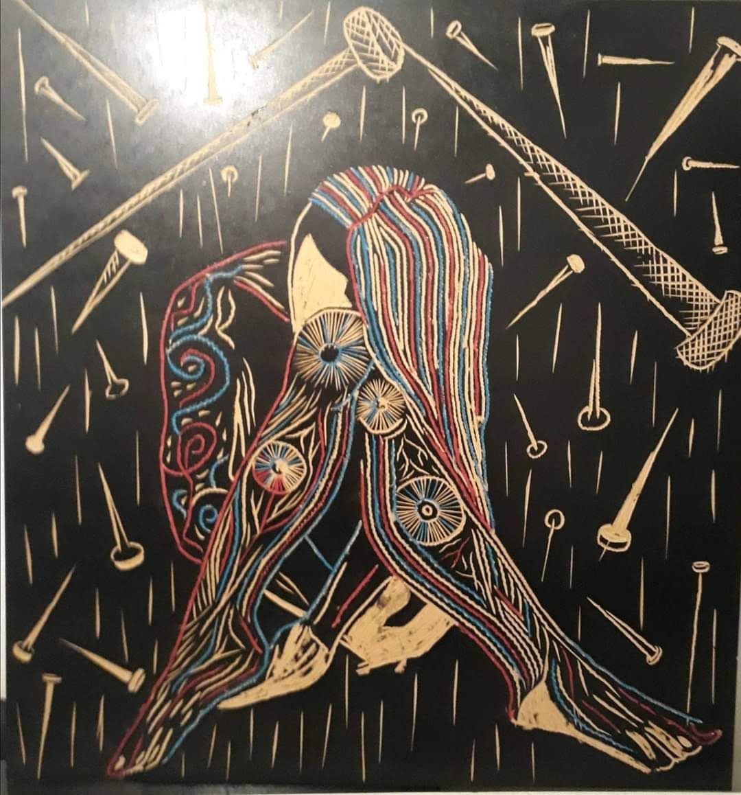 Técnica: Xilografia, tinta de imprenta y acrílico sobre fibro fácil.